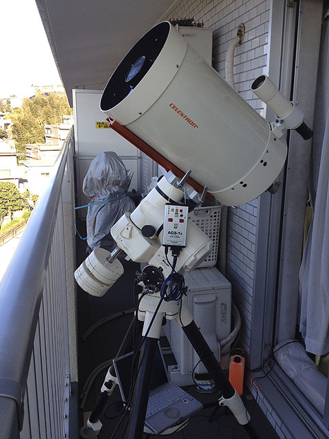 同架しているのは当時セットになっていたパール塗装のセレストロンC11です。副鏡の接着剤がダメになってガタガタになっていました。スペーサーを挟んで緩みを無くし、点像になるよう気長に少しずつ調整中です。