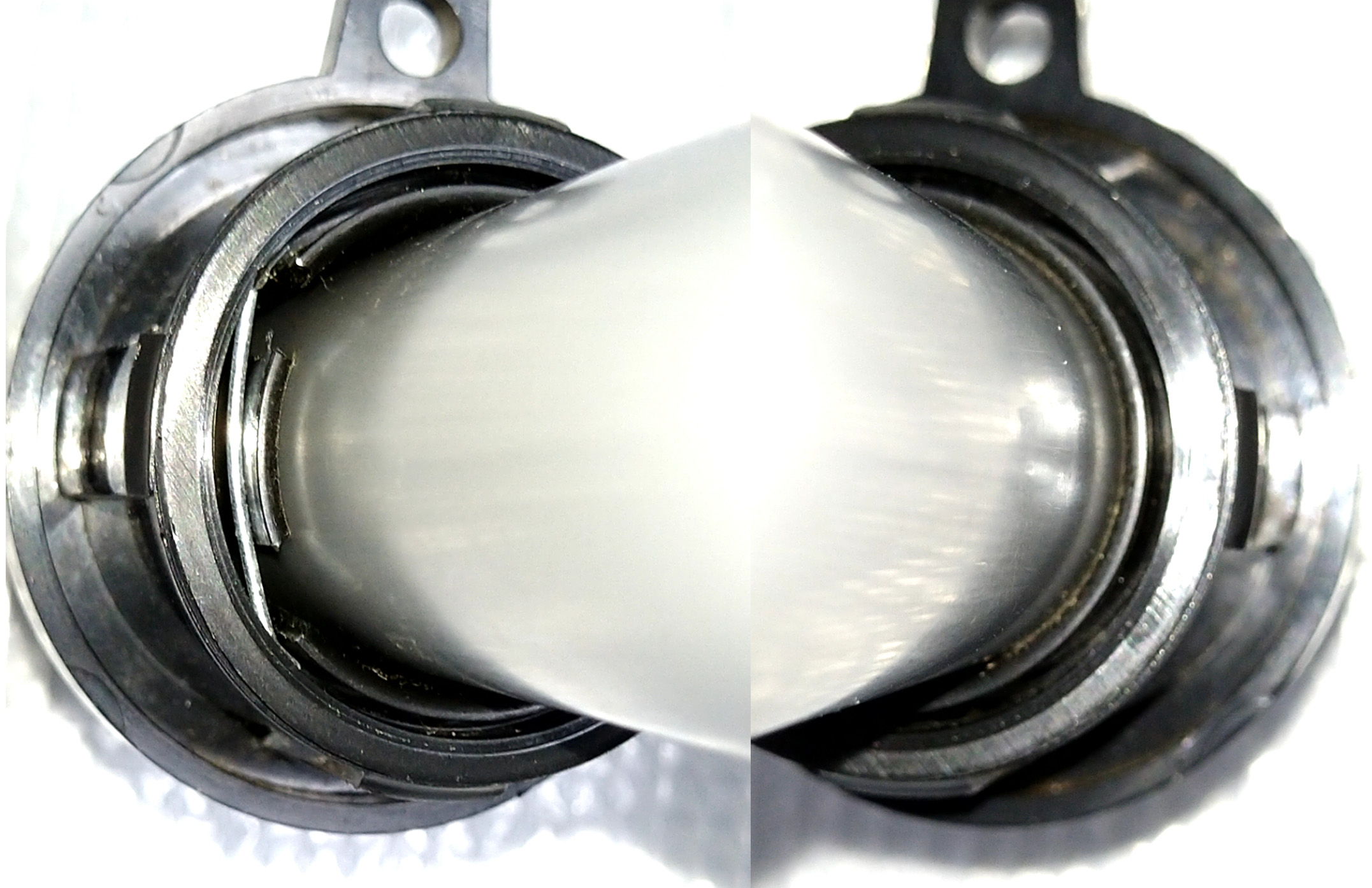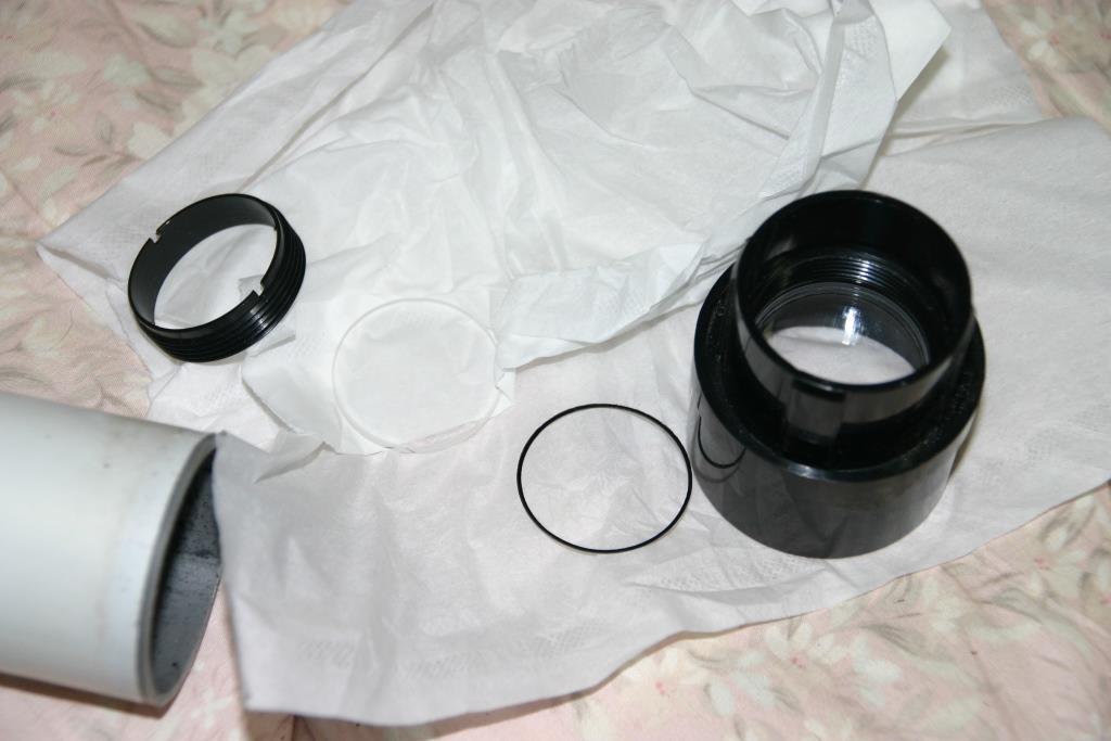 私の塩ビ未塗装の鏡筒のは、レンズというか鏡筒とセル部が外れませんでした。 白鏡筒の方は以前写真でお示ししたかもしれませんが、セル部は外れましたが、クラウンガラスのほうが接着して取れませんでした。 ただ、同じような構造だったと思います。