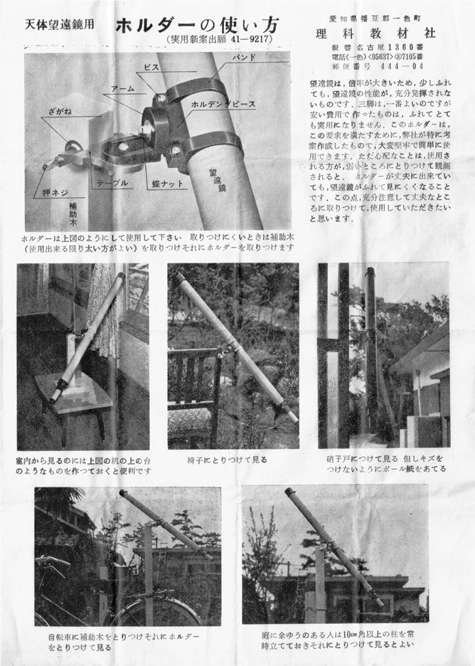 この望遠鏡がきっかけで星に興味を持ち、それが光学につながり、今は光学系を使った測定装置 の設計・製作などの仕事をしています。 高度成長期の皆がまだそれほど裕福ではなかった時代に望遠鏡を買ってくれた両親に感謝しています。