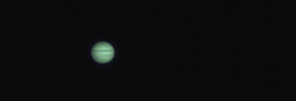 今晩、ようやく赤道儀(ビクセンのSP赤道儀をモータードライブ駆動)にのせて木星を見てみました。 最初に鏡筒に付属していたH12.5mmの80倍で見たところ色収差はほとんど感じられずNEB、SEBがはっきり見えました。 プラスチック枠の安っぽい接眼レンズですが性能は悪くなさそうです。 像が小さいので拡大するためタカハシのOr7mm(143倍)に交換したところNEB、SEBの他に北極側、南極側ともに 色づいているのがわかりました。 ガリレオ衛星は点に見えていたので球面収差も小さそうです。 やはり大きなF値は七難隠すでした。 口径が小さい割にはよく見えていて、購入した当時にまともな6〜7mmの接眼レンズがあればもっと感動できたと思いました。