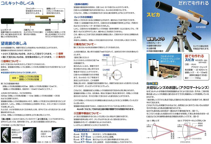 両者のキットに関しては,故富田弘一郎先生が,天文ガイド誌上にテスト記事を書かれていましたが,いずれもアイピースがお粗末で,なおかつ高倍率すぎて実用性に乏しいとコメントされていました.