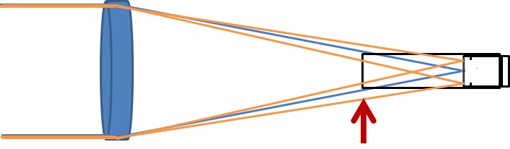 ご気分悪くされても困りますが、私が気にしているのは見てすぐわかる対物の空中焦点(第一焦点とする)近くの蹴られでは無く、以下の赤矢印の部分の蹴られです。