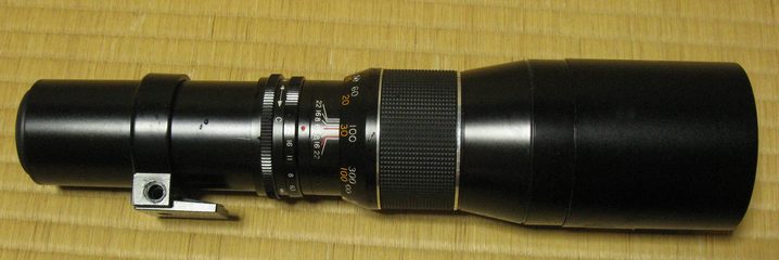 レンズの作りは500mmと同じで、500mmはkimura optと書かれておりました。(大阪日本橋のカメラのナニワで最近まで展示があったのですが、売れてしまったらしく今はなし。5800円だったので買わずにスルー。京都のカメラ屋では10000円だったのでやっぱりスルー)