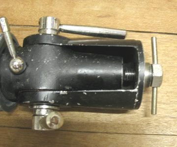 そこで極軸南端の固定ネジを外し、極軸を引っこ抜き、ウオームホイルを押し出せる太さの金属棒を落とし込み、架頭部の水平回転軸のネジを利用してグイグイと少しづつ押すと。。。抜けたああああ!