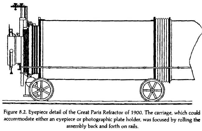 これまで製造された中で最も大きく、焦点距離は55m、レンズの直径 1.25m。先端にフーコーのシデロスタットという鏡を装備し、どんな方向からの光も望遠鏡に導くようになっている。巨大なトンネル内に月の像を映し出した。