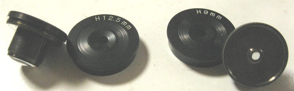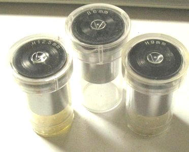 ブランド名無しの真鍮製アイピース。ノンコートでいかにも古そう。目側のキャップがねじ込みで外せる構造。表記は当然刻印です。3個とも構造・刻印がほとんど同じで、昔の五藤やニコンと似ているます。H9とH12.5はカシメ式でレンズが出っ張ってる。。。やっぱり古い。