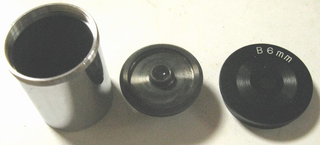で、最後のB6mm。ほとんど同じ構造ですが正の接眼レンズで絞りは外にあります。目側はカシメですが、絞り側から分解出来る部分を外してしてみると・・・目側は両凸単レンズ?で、絞り側は貼り合わせ平凸。逆Kか?ケーニヒか?。。。ミザールのTP6mmと似た構造でした。