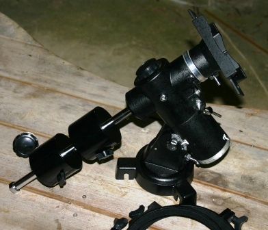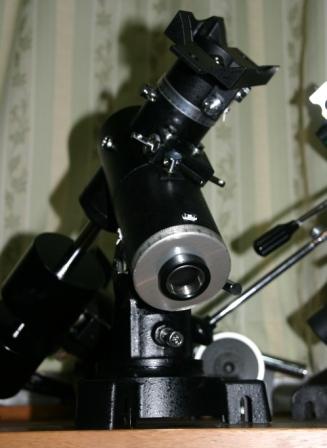 一式は買えませんでしたので、赤道儀のみ購入しました。極軸望遠鏡もセットできるように中空の極軸も案外太く、なかなか使えそうなものです。写真添付します。