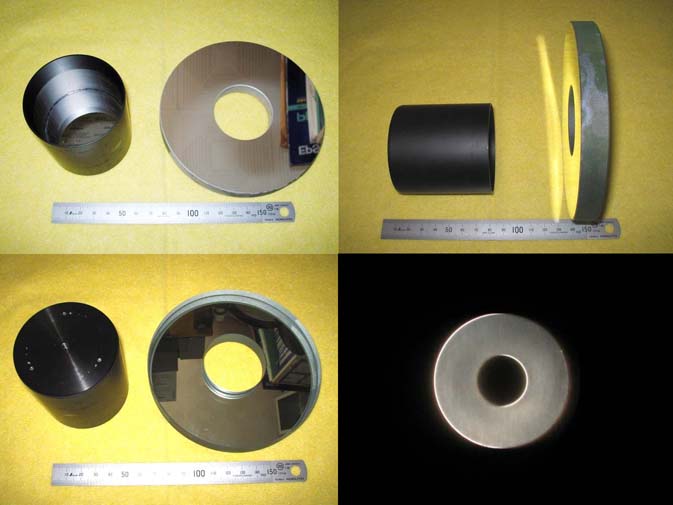 主鏡の裏面の中央部は平面研磨、表面の中央部はメッキをしなければ凹レンズになるだろうという考えです。(バローレンズに?)
