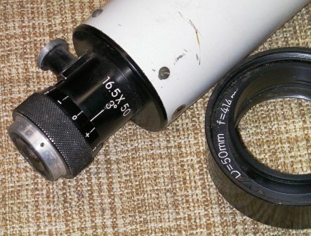 こちらはD=50mm Fl=414mmです。対物側も接眼側もアッセンブリとして鏡筒端面とあたりがでており、筒の長さで対物レンズとレチクルの位置が決まる構造です。