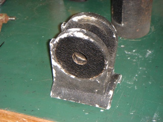 アルミの部品ですが、ピラー側の部品とかみ合う接触面を研削するとなると面倒そうな感じです。(鋳物そのままだと接触面積が???で、固定力が出ないような気がします。)鉄の加工に制限があった(フライス盤の能力)のかなあ?