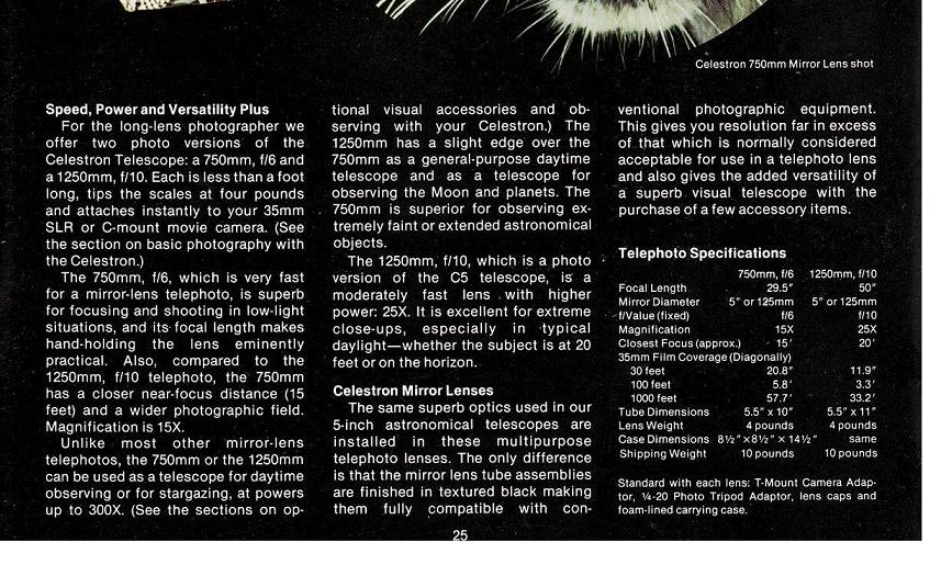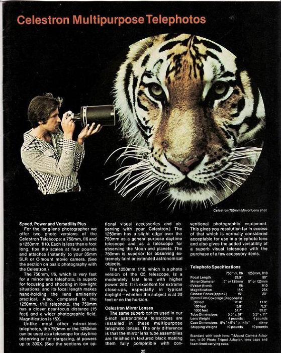 TK・Oさん、はじめまして。 先日手に入れたセレストロンの総合カタログに載っていました。 1980年6月の版でしたからそのころの製品だと思います。 カタログスキャンして添付しておきますのでご覧下さい。 |