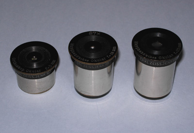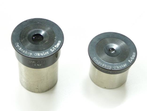 私も、もう歳ですからみなさんのように天体望遠鏡を蒐集する気力もありませんが、最近はアイピースをいろいろ調べては楽しんでいます。ところで、鈴木さんは貴重なものを入手されました。戦前のツァイス社製のアイピースですか、いいですね。手許に0r6mmと0r15mmがありますので、写真をアップしておきます。それぞれのキャップの表面には、Orthoskop Okular f=6mm、Orthoskop Okular f=15mmと彫刻されています。また、キャップの側面には、Or15mmの方は側面が長いので、アクロマートレンズの中にCARL ZEISS JENAの文字が、Or6mmの方は側面か短いので単にCARL ZEISS JENAの文字と小さなレンズのマークが彫刻されています。五藤光学や日本光学のアイピースは、これらツァイスのデザインを参考に開発されたのではないでしょうか。