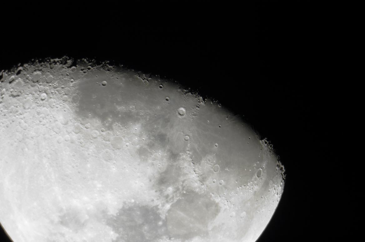 写真はダチカで先日撮ったコペルニクス付近トリミングなしの物ですが、テレプラスと接写リングで直焦点拡大です。もしかしたら、良いアイピースで拡大した方が周辺は収差が出ないかもしれません。でも、中心像は4cmの限界かと思います。