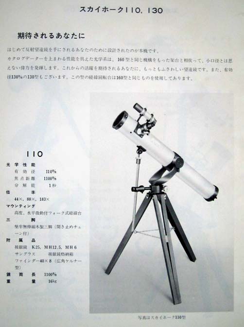 kaba.gif アスコと見てつい書き込みしてしまいます。この機種は当方、知りませんでした。アスコ・西村・宇治等、20年ほど前の垂涎の機種は最低サイズが15cmだと思っていました。当方も昨年7月に16cmをオクで入手し、3ヶ月かけてこつこつレストアし、現在ではひょいと持ち出してパッと見てサッと撤収できるため非常に稼働率が高い機種になっています。でも少し重いのが欠点かな?10cmは如何ですか?あと、三脚の開き防止のチェーンはレトロで良いのですが実際使用すると全く使用に適さないので、一般的な三角板を併用した方式に変更した方が良いと思います(当方、鏡筒を載せる時、三脚が捩れて倒した事があります)。レストア記(あるのか?)に期待します!