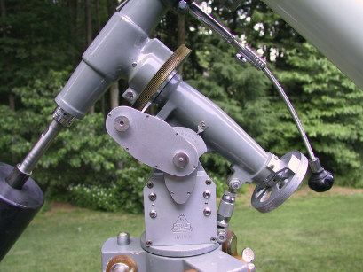 赤経軸の微動は微動ハンドルではなく、差動装置の軸にプーリーが付いており、そこに輪になった長い紐が付いており、これが微動ハンドルの代わりです。