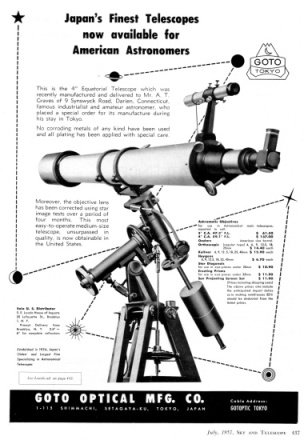 下の1,2枚目と3枚目、赤道儀違うでしょ。でも、アメリカでは併売されていた時期があったようです。