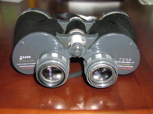 KKのアストロノーマですが、原さんがおいでになる前にJBコードの件は話題になっていて、店長に「最近は勝間の評判が高いから、勝間製と表示しておいた方が良いですよ。」とお奨めしときました。 1枚目の写真左は数日前に落札したばかりの勝間の10×50です。見かけ視界は64度と欲張っていませんが、良像範囲も広く素性はよさそうです。ただ、軸ズレ・カビありなのでこれから分解します。 一方右はガラクマさんのカタログの左に記載のあるエイコー7×25実視界10度のダハです。国産ダハで見かけ視界が70度もあるのも珍しいですが、射出瞳は真丸で真面目に作ってあります(JB020)。 2枚目の写真は以前持っていたJASONブランドの7×50 11度ですが、エイコーのと同じものでしょう。マグネシウム合金なのでかなり軽量ですね。ただ、プリズムは大きさが不足しています。このスペックで10度の実視界を持つ軍用としてボシュロムのMk41というのがありましたが、プリズムは化け物のように大きく重量は2kg近くにもなってしまいます。 えっ、KKでの予約品ですか?いやあ、ビクセンのあの短いピラーは初めて見ました。もちろんエンコーダ付きの架台やなによりもあの筒に惹かれたのですが・・・