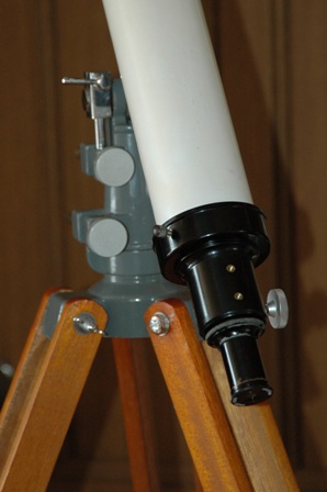 それから、ファインダーですが、私のは最初から付いていなかったのではないか推測しています。それというのも、接眼部に取り付けた形跡が全くないからです。取り付けネジの使用感もありません。この望遠鏡の格納箱には、ファインダーを格納する箇所がありますが、ここもあまり使用感がないのです。この望遠鏡は、学校で理科の授業の際、太陽観測に使用することを目的として設置され、そのためにファインダーは取り付けられていなかったのではと思います。