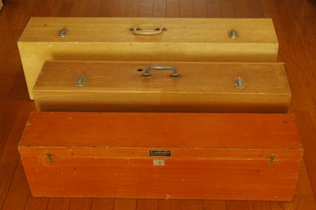 添付の写真は、格納箱の内側です。ついでに、エイコーST300とミザールアポロ型の格納箱と比較してみました。手前から、五藤、エイコー、ミザールの順です。五藤光学6cmは鏡筒部分のみの格納なのでスリムですか、取っ手も付いていなくて、持ち運びには不便です。理科準備室に置いておくのがお似合いというところですね。