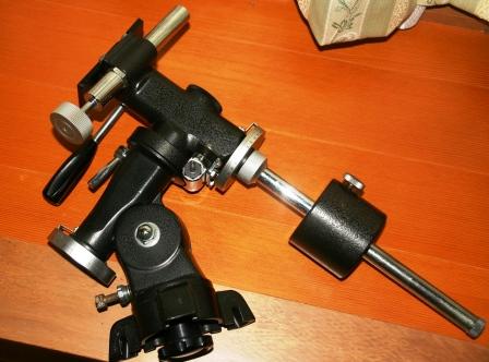 黒色の時代のもの、というか、極軸望遠鏡が内蔵されていないタイプで、もっともタカハシらしいのはD型やその派生型だと思います。まさに質実剛健といった感じですが、V-1はガラクマさんおっしゃるように、どこか柔らかさやしなやかさを感じます。それでいて、精度や強度は犠牲にしていません。また、赤経微動用のウオームネジが下についているため、モーターの取り付けがスマート! になります。写真のセットはFL-80SとAL90三脚で組んでいますが、軽量、高信頼で重宝しています。ちなみに、V-1はP型用の延長筒が使用可能でした。実用半分、眺めての楽しみ半分といったところです。