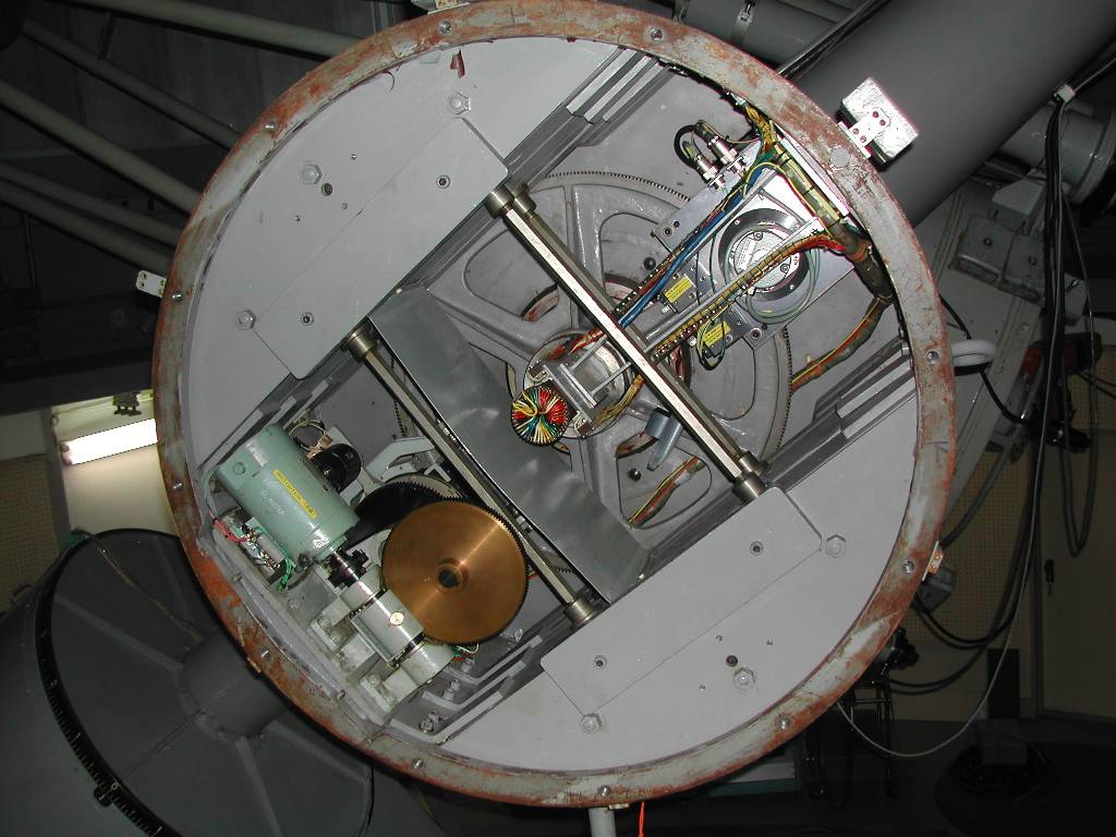 また、この91cmはこの大きさのためもあり、高速導入用のモータと、天体追尾用モータが別になっています。バランスウェイト内のモータは、その高速導入用です。そのため最近のE−ZEUSやスカイセンサをそのまま適用できず、システムの更新が頭の痛いところです。