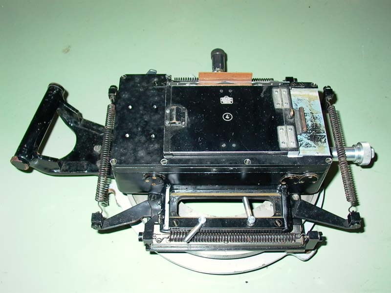 トップリングに付いているのは、プライムフォーカスに天体を導入するファインダー(口径5pぐらいF10くらいと思います)で、L型ファインダーのようにプリズムで横からのぞけるようになっていた思います。その下の四角い箱はよくわかりません。(望遠鏡やドームのリモコン関係か。)トップリングの向こう側に20p屈折のレンズ部分が見えます。プライムフォーカスに載っているのは、主焦点カメラと思われるのですがなにぶん本物をみたことがないので・・。おそらくこの写真は工場での組み立て時のものと思われます。南北ピヤーの形状と高さが天文台のものと異なりますし、副鏡とカメラが同時に装着されています。