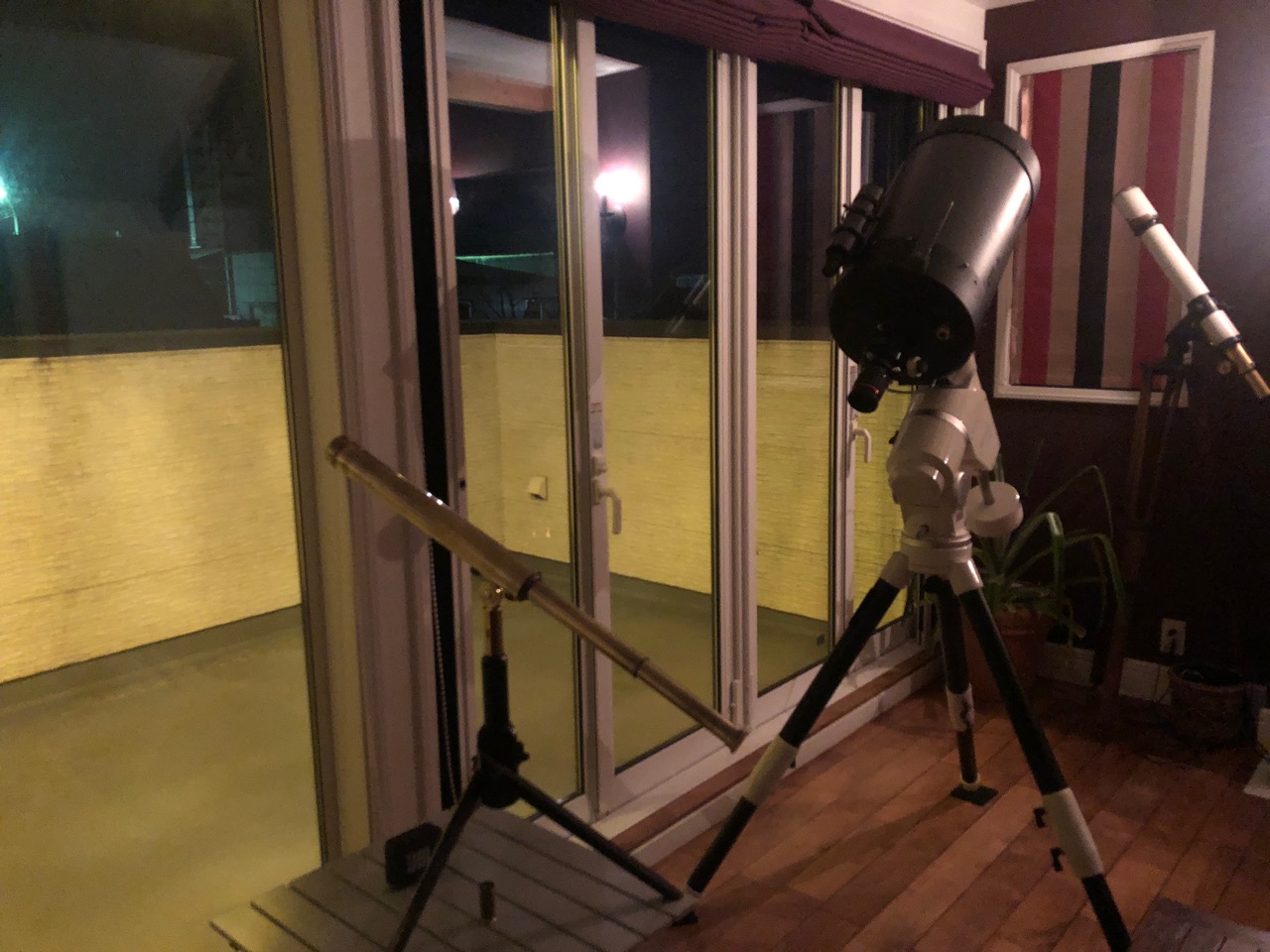 昨夜は久しぶりに晴れたので早速観望してみました。(寒いので室内からですが、、) 、、酒を呑みながら月を見るには良さそうです、、室内から っていうか金ピカ鏡筒を肴に、、妄想してるだけでも最高です。
