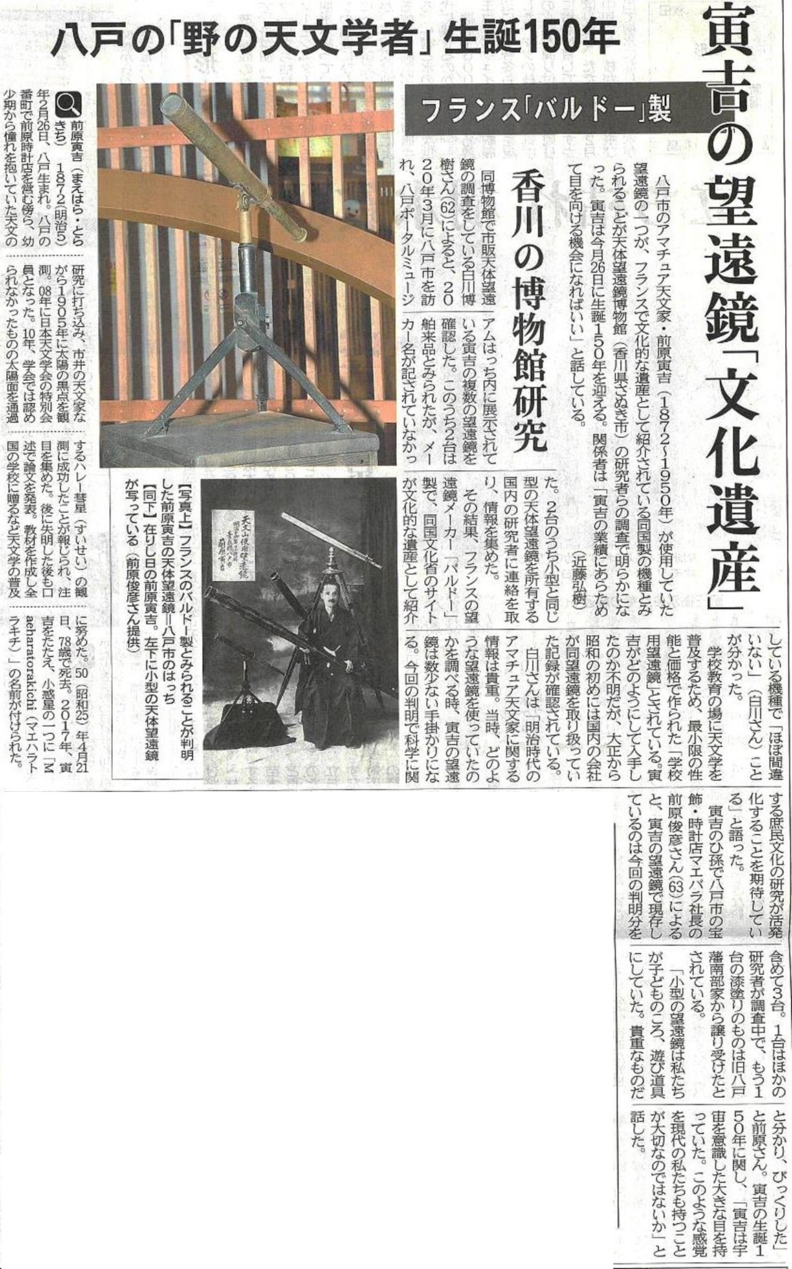 前原寅吉氏と望遠鏡の写真の日付は何ですか? |