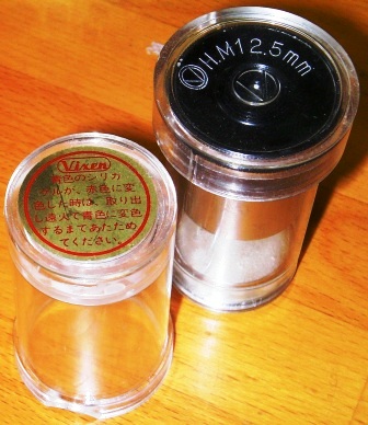 透明なケースで外から中のアイピースがよく分り、シリカゲル(裏のシールを剥がし交換可能)まで入っております。