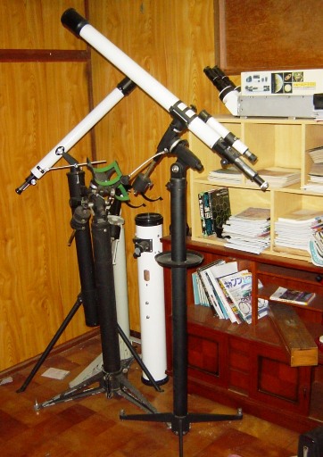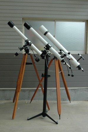 ガラクマさんの写真、スペースSP60デラックスの背後に写っているのは、ケプラー製の60ミリ屈折経緯台ですね。運搬時にはピラーの中に鏡筒を入れることをセールスポイントにしていたモデルだったと思います。現存数はそれほどない、希少なものでしょう。