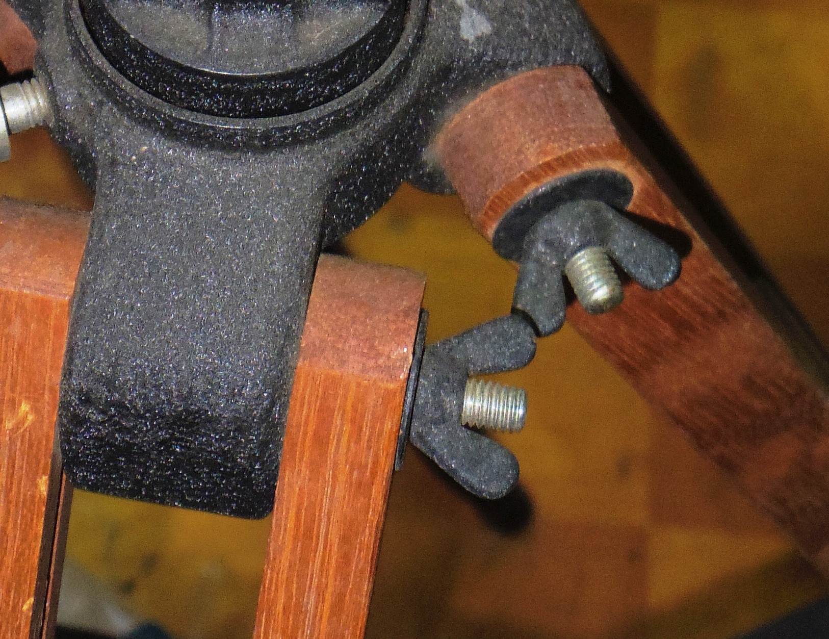 ところで、あらためて望遠鏡を見ていて気がついたのですが、金属部分の表面仕上げがすべて共通です。なんと三脚の蝶ナットどころか、ワッシャーまで。ちょっと驚きです。
