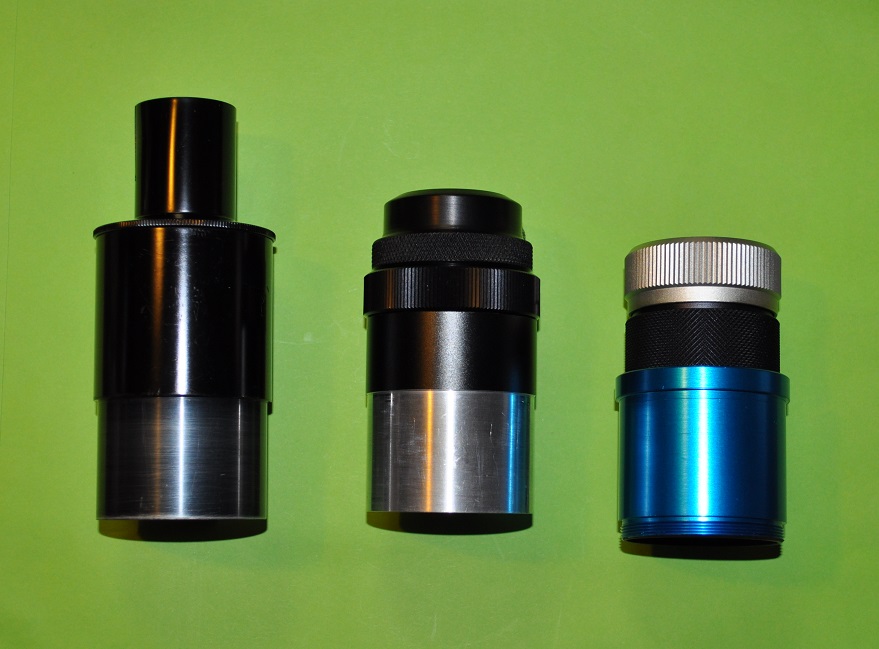 接眼ADの画像では、左からニコンオリジナル、真ん中がビクセン加工品(ガラクマさんより)+かつきワークショップAD、右は遊馬製作所+タカハシADです。LVでは焦点位置の関係で、天頂プリズムを使用するときには、右のセットを使うことになります。