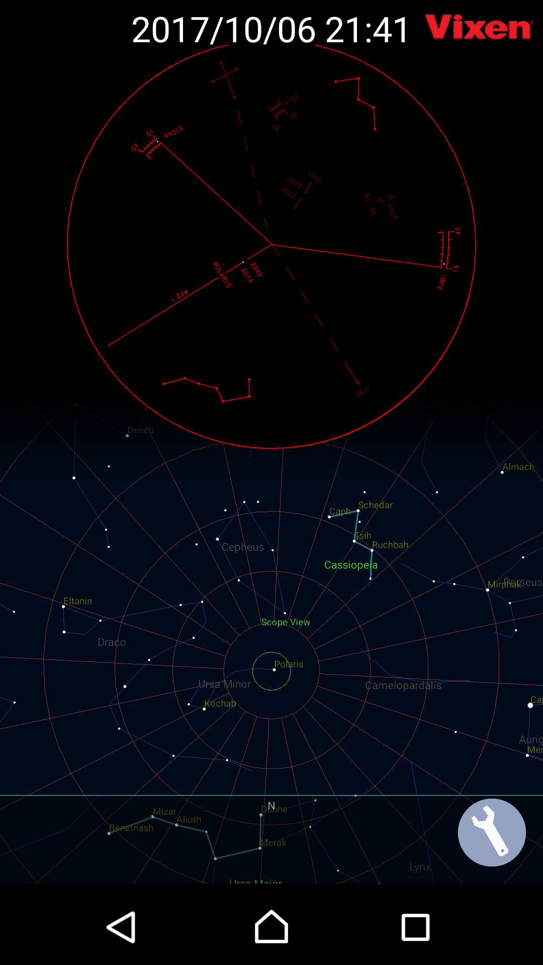 I used the 8cm nikon's finder of feature 6x20mm (viewing angle of 8 degrees) to simulate the polar axis adjustment and Using Vixen app PF-L ASSIST (as the same Nikon finder of specification). as last fig...
