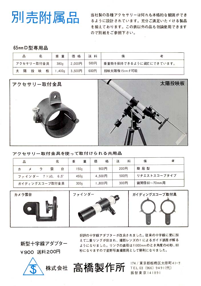 タカハシのHPの歴代カタログ→TS式天体望遠鏡総合カタログは存じていましたがこの部分は見過ごしていました。