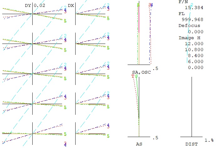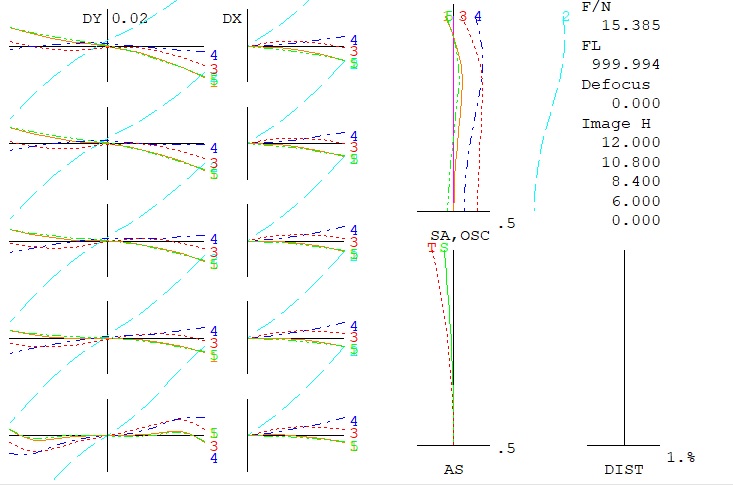 65mmf1000mmの条件で光学シミュレートによる収差図を描いてみました。