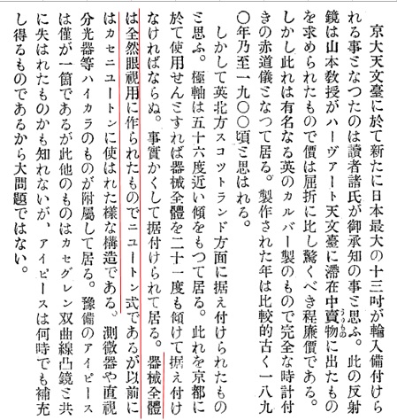 中村要「京大天文臺の十三吋反射望遠鏡の検査」『天界』1925,5(56)
