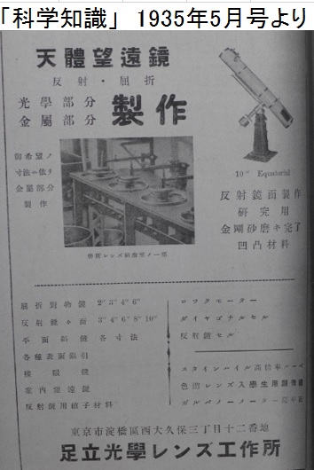 (有)足立光学レンズ製作所及び、足立英一氏について、戦後の資料としては天文雑誌等での広告もあり、