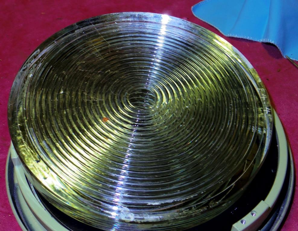 そして、鏡の裏ですが、いっちょ前に飴色をしたガラスに同心円状の溝が切られ、古スコには全くない形状です。