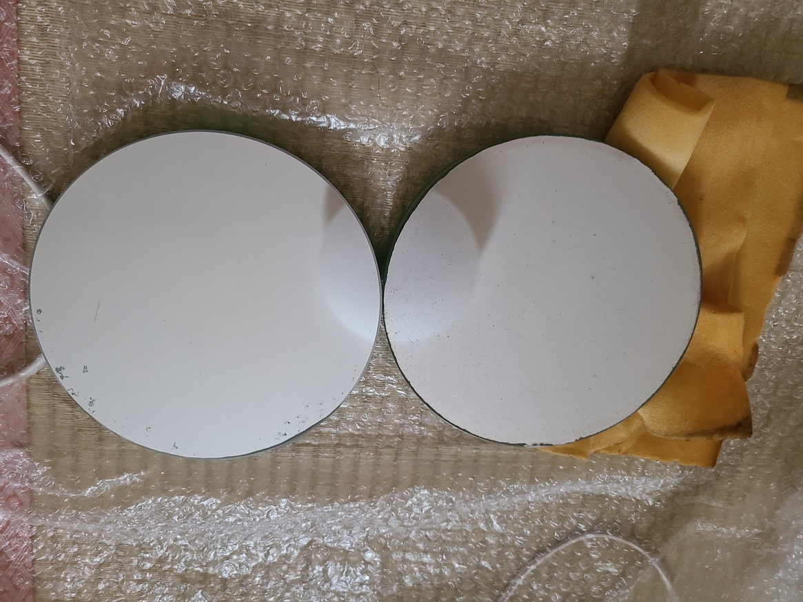 このミラーの15cmF8バージョンを持っています。原村のジャンクだったと思う。出所不明でした。多分インゴットの型なのでしょうけど、不思議な作りです。表面積が大きく密着しないので外気に馴染みやすいかも。見え味はそこそこ良かったです。15cmF8用の自作鏡筒に同一スペックのNTK/ダウエルらと入れ替えて遊んでいます。