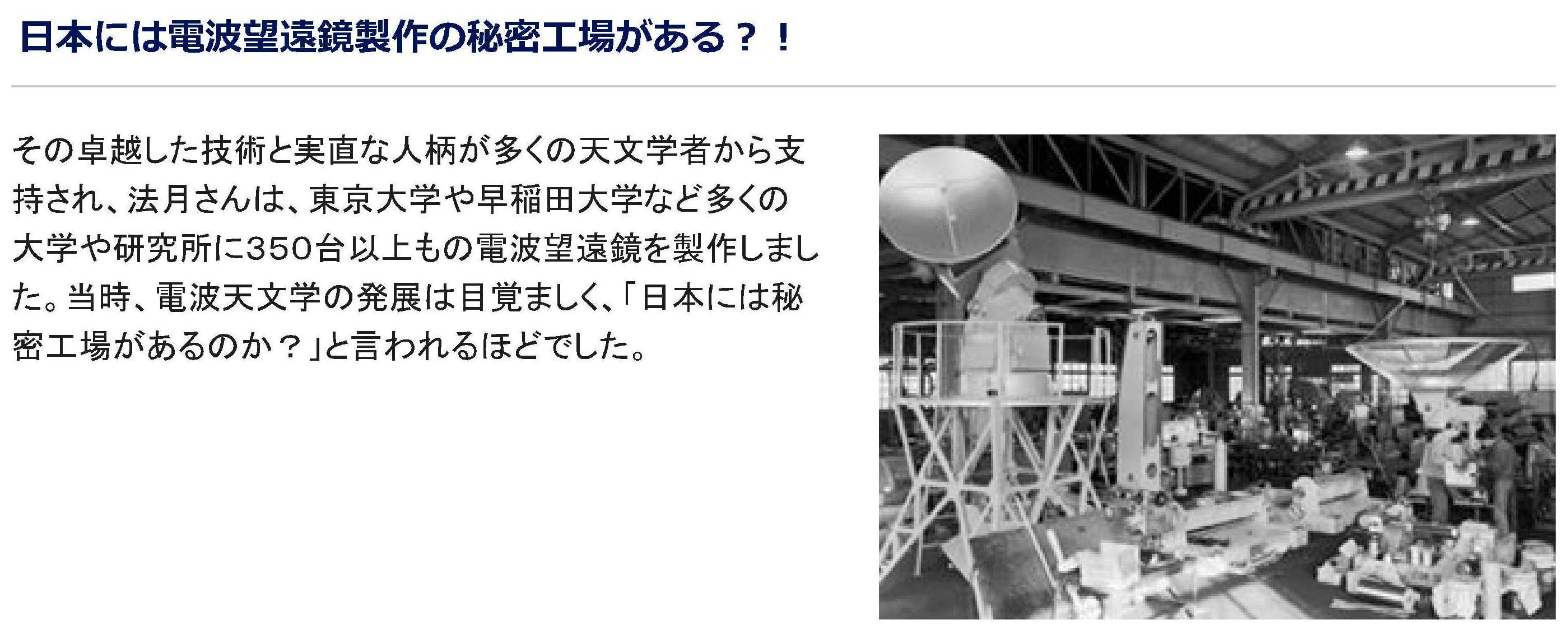 海上保安庁、名古屋大学を始め、官公庁にたくさんの光学望遠鏡、電波望遠鏡を納めた、けっして大きくない望遠鏡屋さんです。