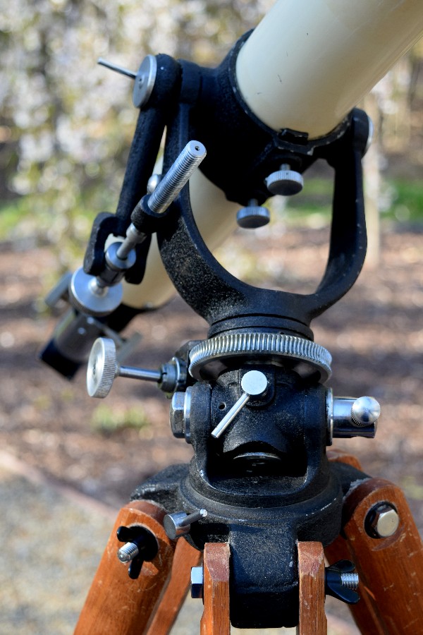 凄く格好良いです。微動アームの形状から見て、1960年代にケンコーから販売されていた経緯台「WO-710」の製造工場と同じところで作られていたと推定できます。この経緯台は、他社からも類似構造の製品が販売されていました。