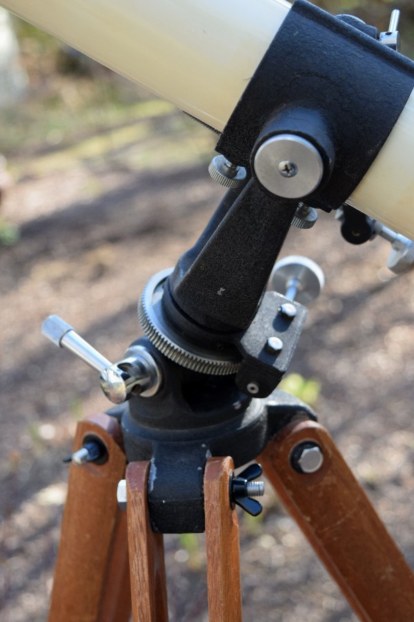これは非常に珍しいハイブリッドalt-az / EQマウントです。それがどのように設計されているかはわかりませんが、60mmスコープ用です。私は似ているATCOマウントを見たことがありますが、それらはすべて斜めに曲がっています。これは、方位角、RA、およびdecで回転します。カウンターウェイトの規定はありませんが、必要ありません。それは非常にしっかりしていて非常に安定しています-タッピングまたはフォーカスの際の振動はほとんどありません。現在、227x Tasco 60/910を搭載しており、このマウントでとても満足しています。この時間の他のマウントと同様に、それは拘束されます-クラムシェルではないため、マウントからそれを削除するには、対物レンズ(またはフォーカサー)を削除する必要があります。マウントを使用した後、設計上の欠陥が1つあることに気づきました。子午線反転は実行できません。